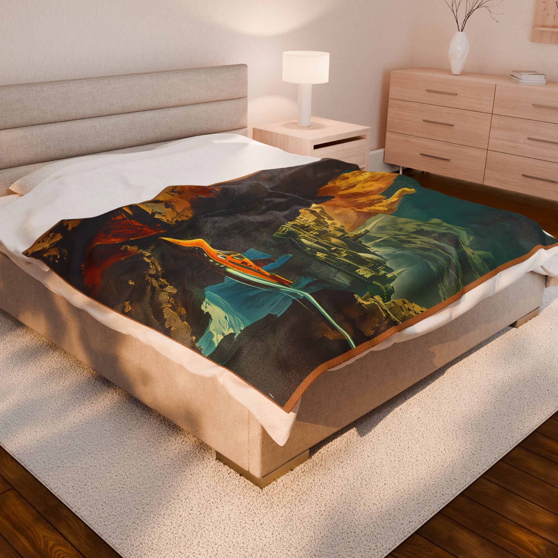 Find yourself in the futuristic and visionary world of the Future World 2323 Collection with this velveteen plush blanket. Perfect for science fiction enthusiasts and book lovers, this blanket brings a touch of imagination and creativity into your living space. Ideal for cozying up during cold winter nights or for adding a unique touch to your home decor. Great gift for fans of speculative fiction, perfect for birthdays, holidays, and special occasions.